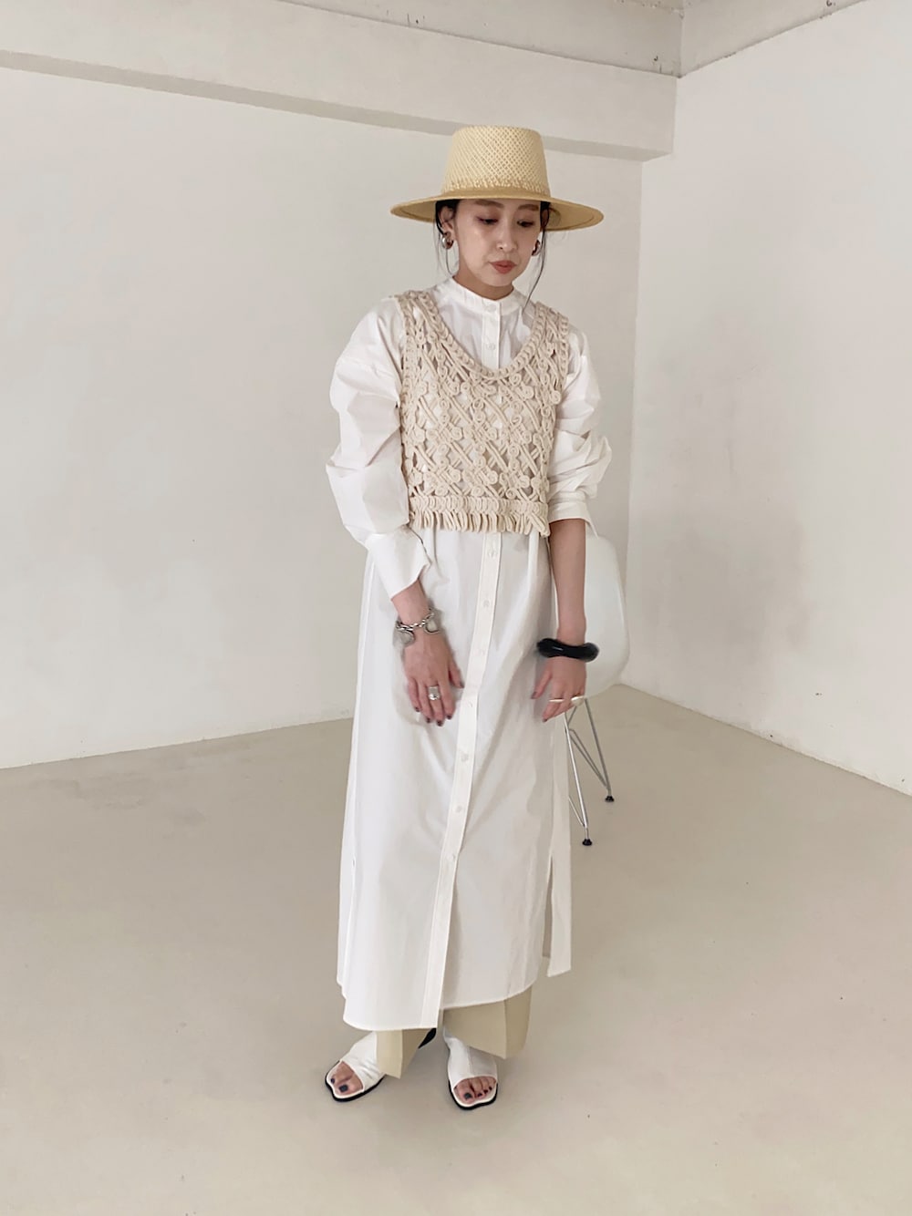 MARIKOのベスト「クロシェキャミメッシュベスト」を使ったコーディネート
