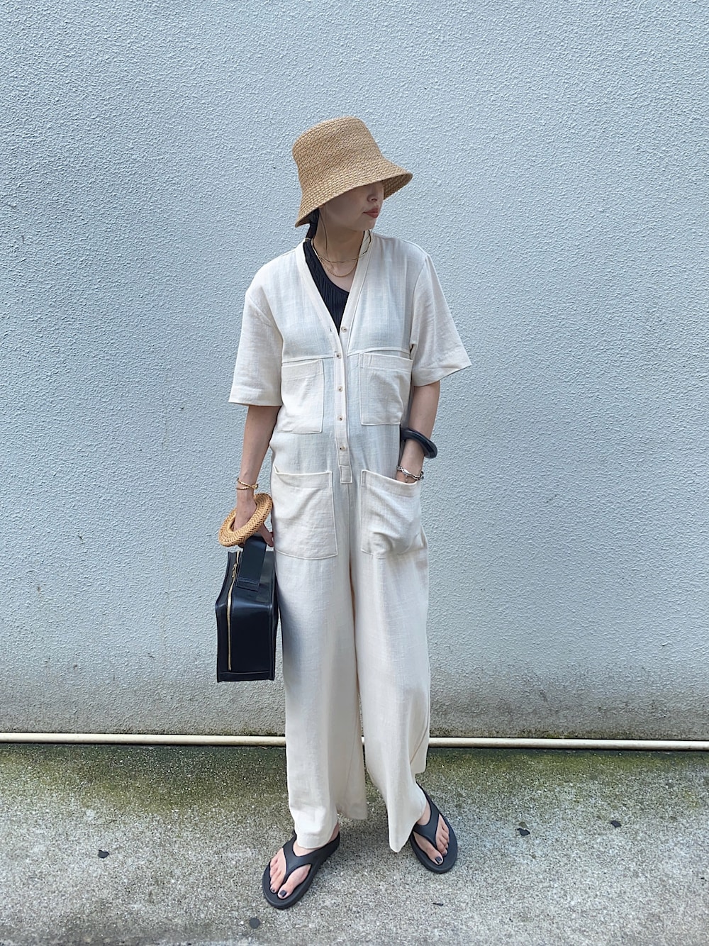 MARIENT新作のリネンサロペット 首元もスッキリ見え カジュアルすぎない1枚です☺️ 見て頂きありがとうございます♪ Instagram 👉mariko____wear