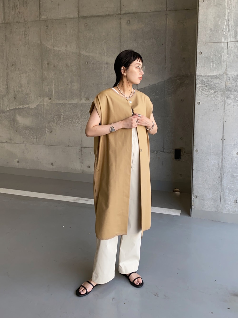 袖、裾の丸みのあるシルエットが ポイントのロングジレ♪ 夏はTシャツやノースリーブで。 秋の季節には ブラウスやニットとの組み合わせが オススメです☺︎ 見て頂きありがとうございます😉 Instagram 👉mariko____wear