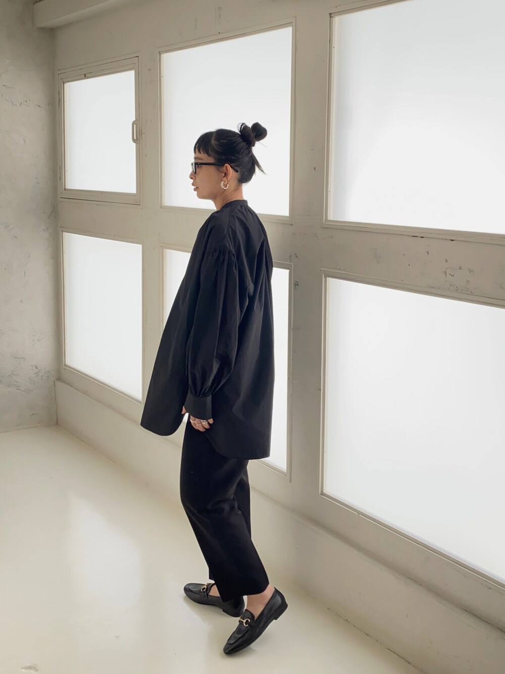 袖がシアーに切り替わった ギャザーブラウス♪ オールブラックでも 程よい袖の透け感がアクセントとなり コーデ全体が重く見えない😉 見て頂きありがとうございます😊 Instagram 👉mariko____wear