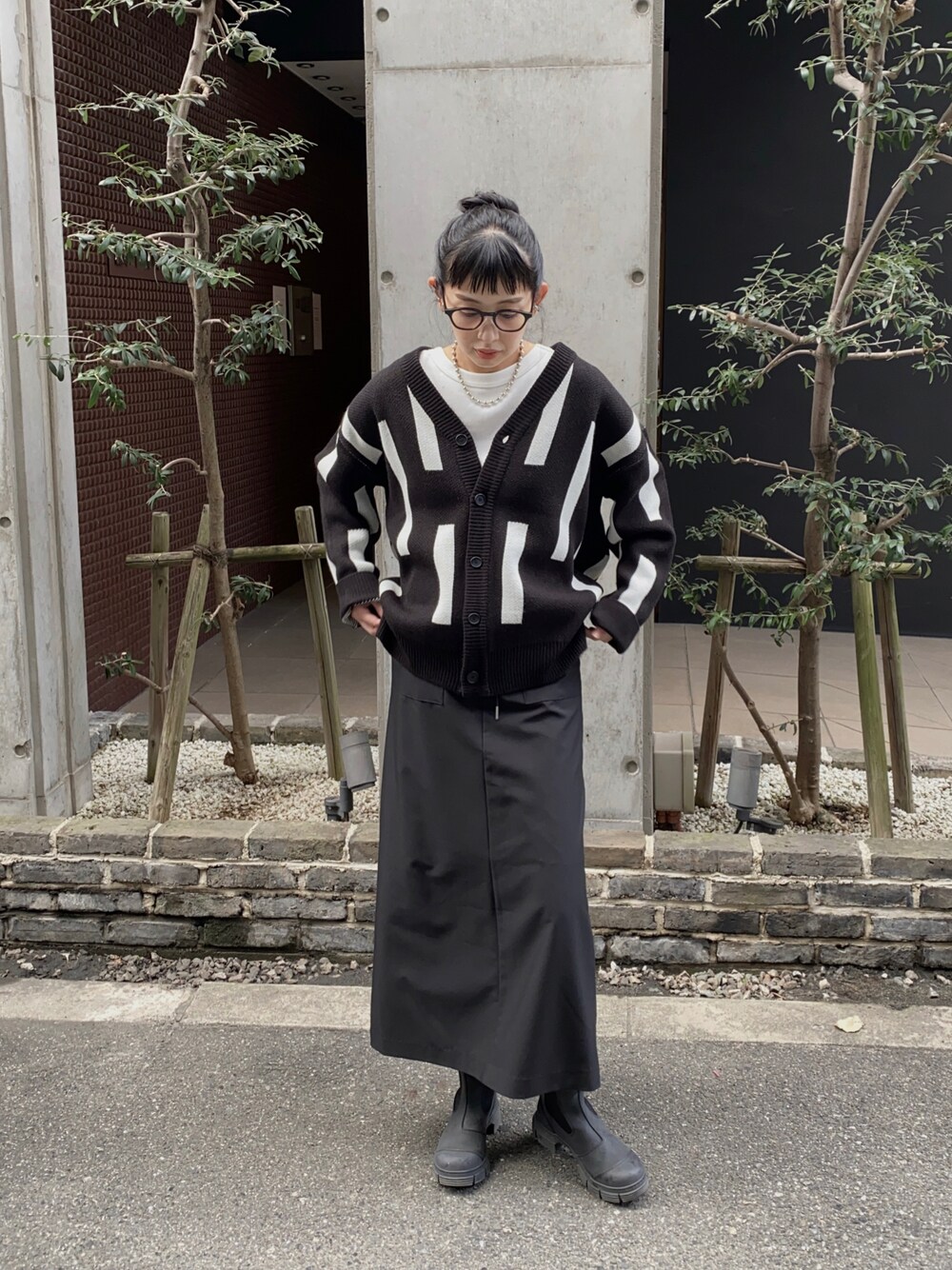 MARIKOのニット/セーター「スティックニットカーディガン/ユニセックス」を使ったコーディネート