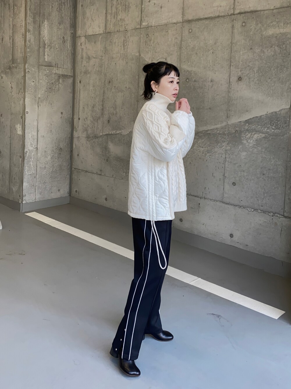 1枚でオシャレが決まるやつ♪ ケーブルニットとキルティングが ドッキングしたトップスです☺︎ ハイネックだから首元もあったか。 見て頂きありがとうございます😊 Instagram 👉mariko____wear