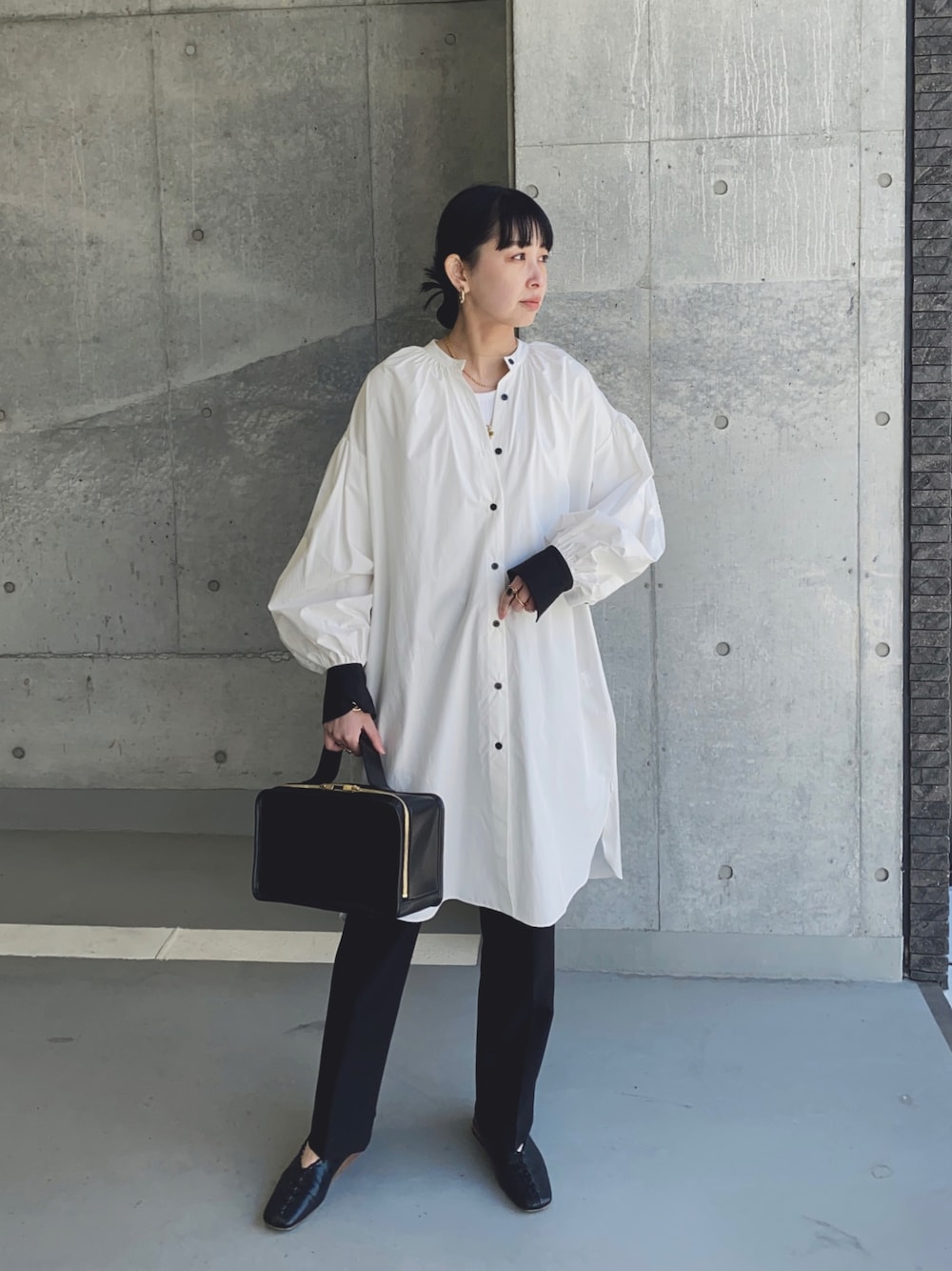 MARIKOのシャツワンピース「モノトーンギャザータイプライターOP」を使ったコーディネート