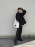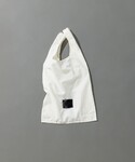オールブラックコーデのポイントに ホワイトのトートバッグ👜 エコバッグだけどしっかりしていて メインバッグとしても使える♪