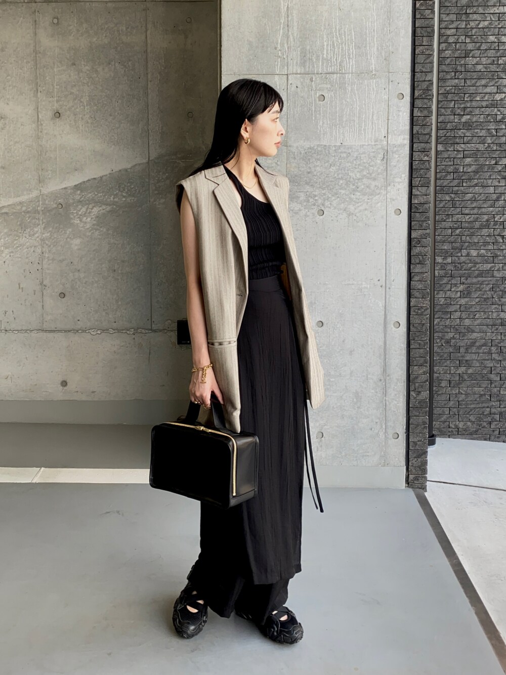 モードな雰囲気の ストライプスリーブレステーラードJKは 近日発売のモノ♩ charcoalとあるんだけど どちらのカラーも大人っぽくて好き❤️ 長袖と合わせたかったけど、 正直この日は暑すぎて無理だった。 ノースリーブでも可愛かったよ🥰 見て頂きありがとうございます♪ Instagram ☞mariko____wear