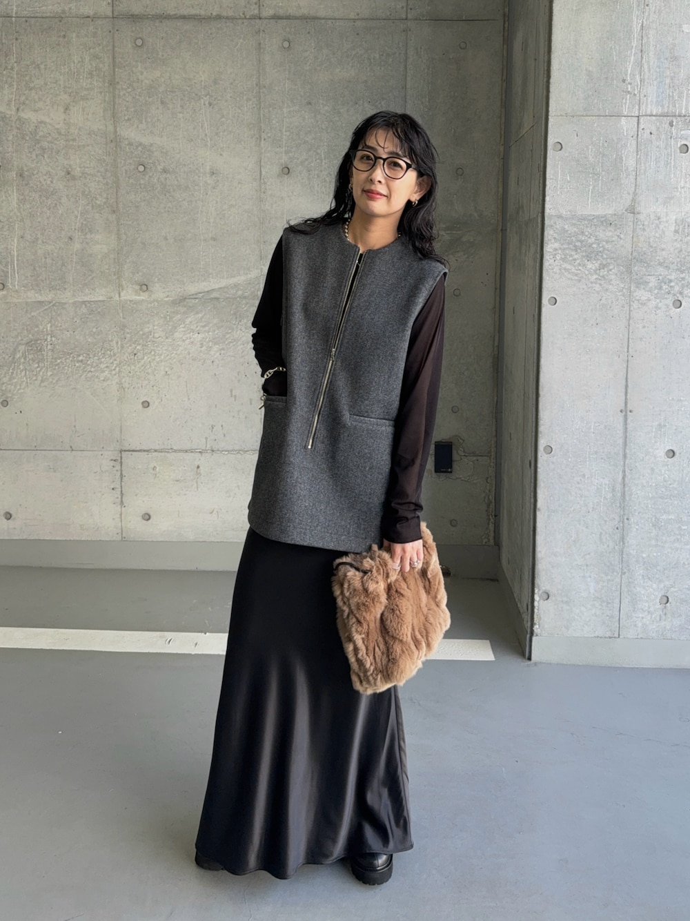 MARIKOのベスト「ウールZIPベスト」を使ったコーディネート