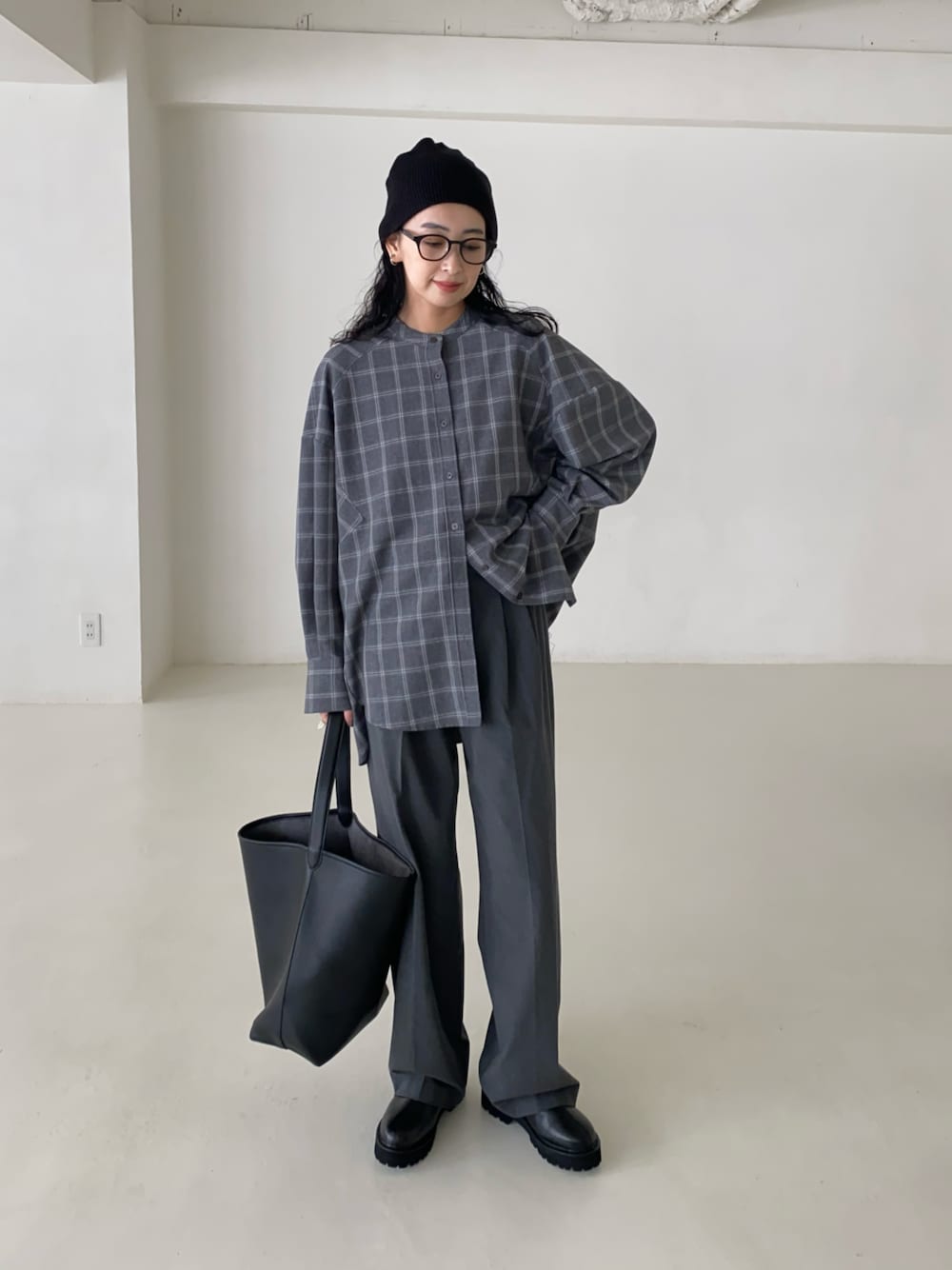 チャコールグレーのワントーン🩶 小物類はブラックで。 お気に入りコーデ😊 見て頂きありがとうございます♡ Instagram ☞mariko____wear