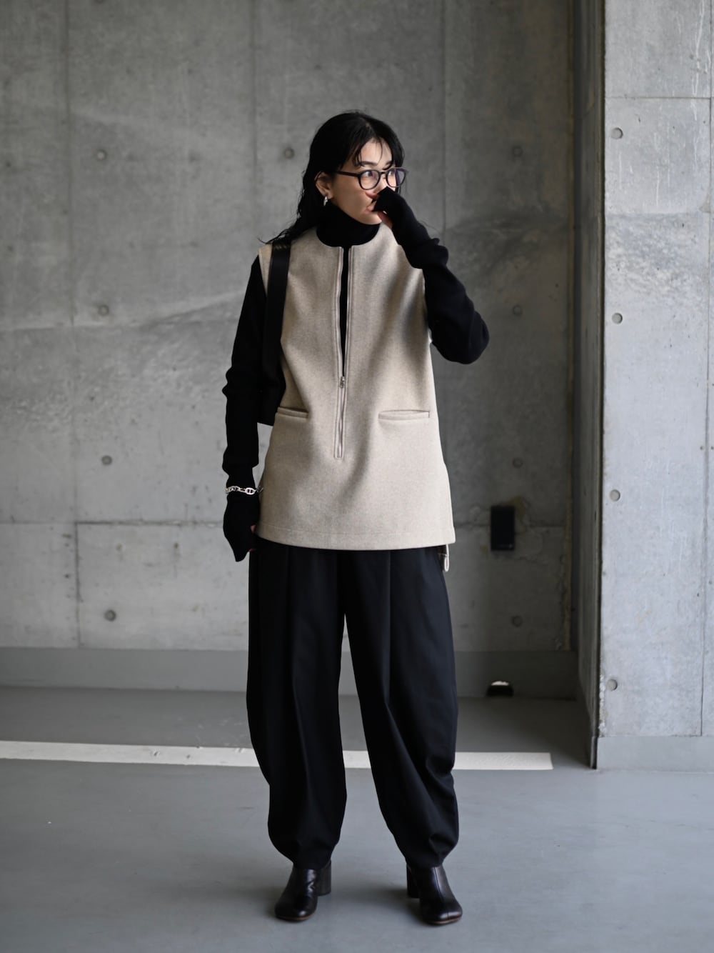 MARIKOのベスト「ウールZIPベスト/ジレ」を使ったコーディネート