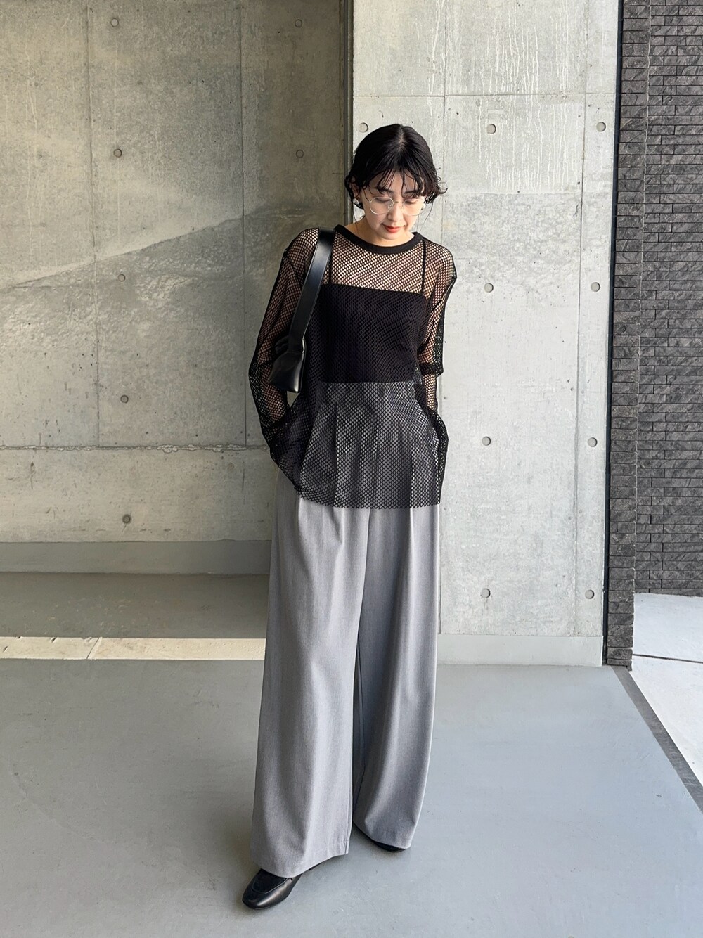メッシュトップスは 程よくゆったりとしたシルエット、 Tシャツレイヤードも可愛いはず!! ボトムはワイドスラックスを持ってきて モードカジュアルに。 見て頂きありがとうございます😊 Instagram ☞mariko____wear