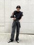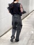 オトナカジュアルブラックコーデ チュールのシアーブラウスの アシメデザインがコーデの主役 両袖が違いデザインなのがポイント! 見る方向によって違う雰囲気が楽しめる❤️🔥 インナーはシンプルにタンク マルジェラのスリットデニムと合わせました 見て頂きありがとうございます😊 Instagram ☞mariko____wear