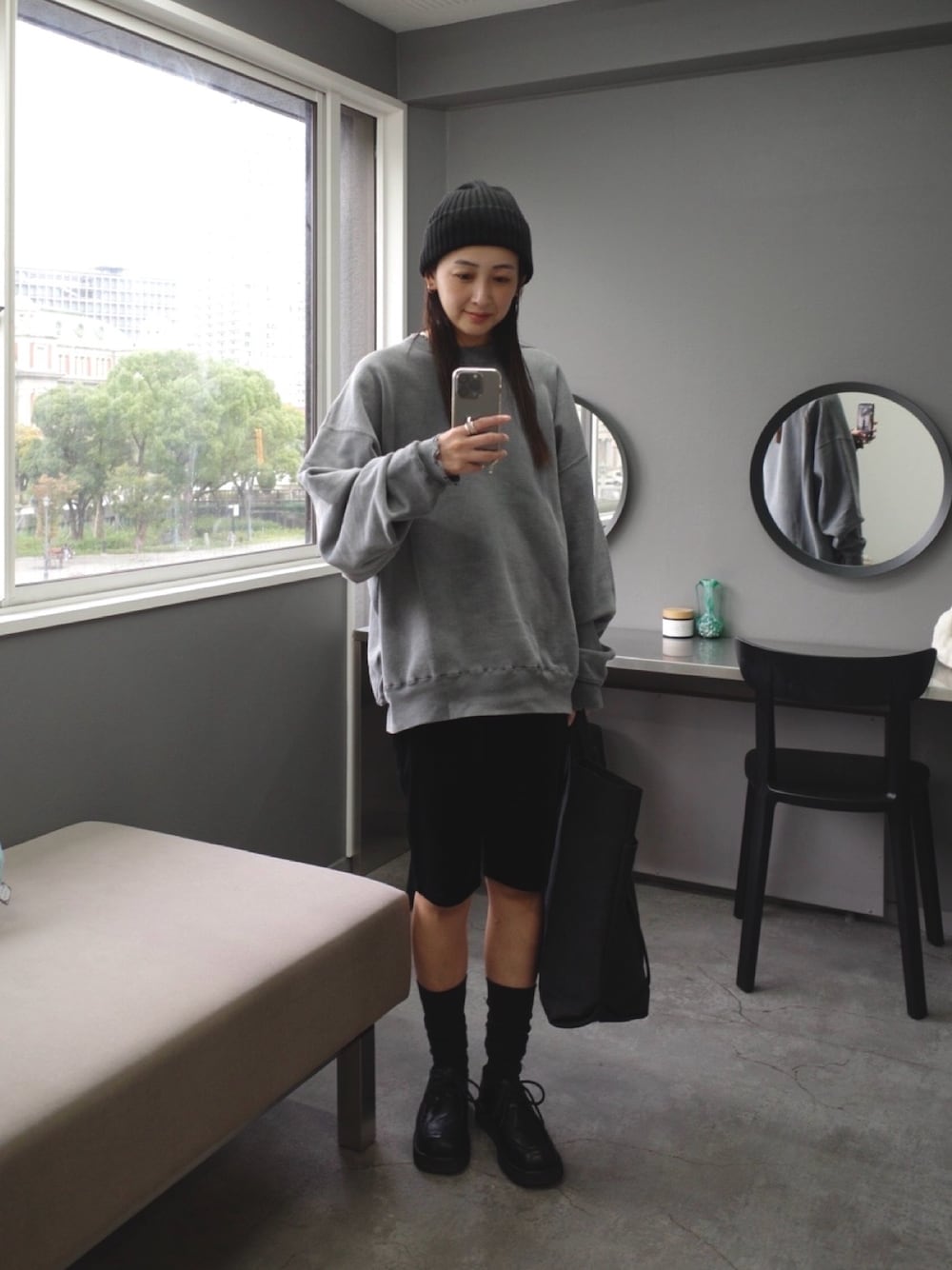 バイカーパンツに挑戦! カジュアルになりすぎないように 足元は靴下くしゅくしゅさせて ローファー👞 見て頂きありがとうございます♪ Instagram ➡︎mariko____wear