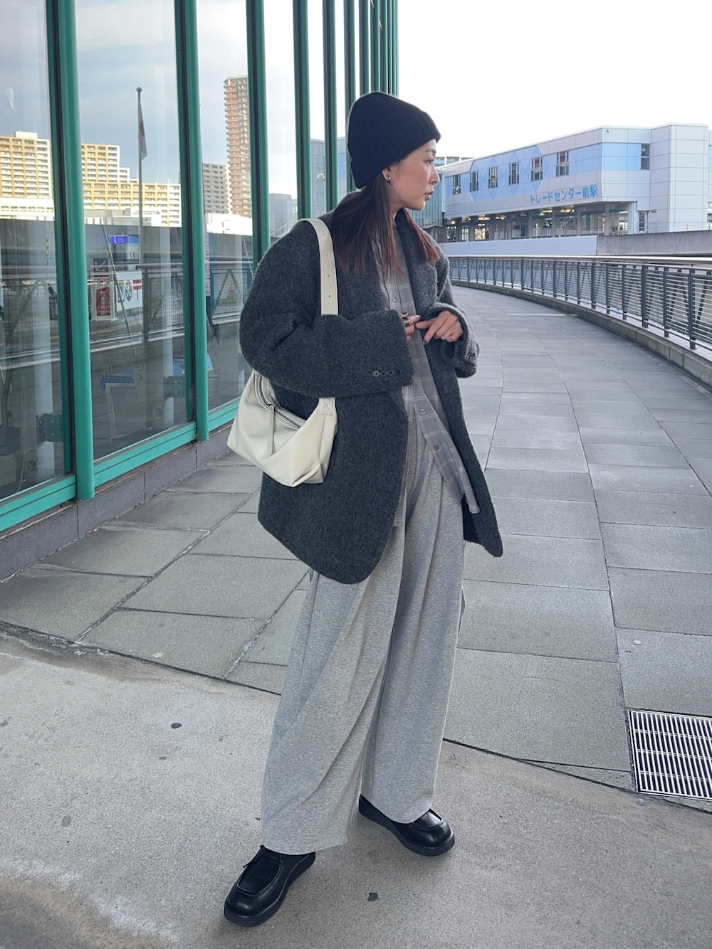 昨日のコーデ。 チェックブラウスとスウェットパンツは グレーで合わせ、 アウター、ニット帽、シューズは濃いめにして コーデにしまりが出るようにした! 見て頂きありがとうございます😊 Instagram →@mariko____wear