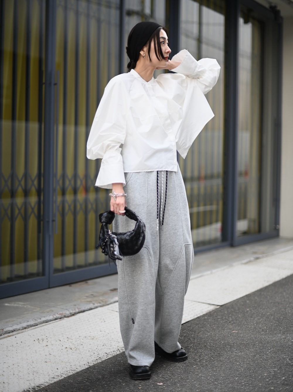甘めのキャンディスリーブブラウスに スウェットパンツでカジュアルに。 これ着てお花見行きたい🌸 見て頂きありがとうございます😊 Instagram →mariko____wear