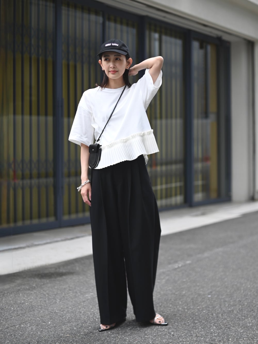 MARIKOのTシャツ/カットソー「プリーツデザインドッキングトップス【洗濯機洗い可】」を使ったコーディネート