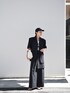 ハーフスリーブのジャケットと レイヤードパンツのセットアップ。 肩パット入りでモードな雰囲気のアイテムです😃 見て頂きありがとうございます🙇♀️ Instagram→mariko____wear