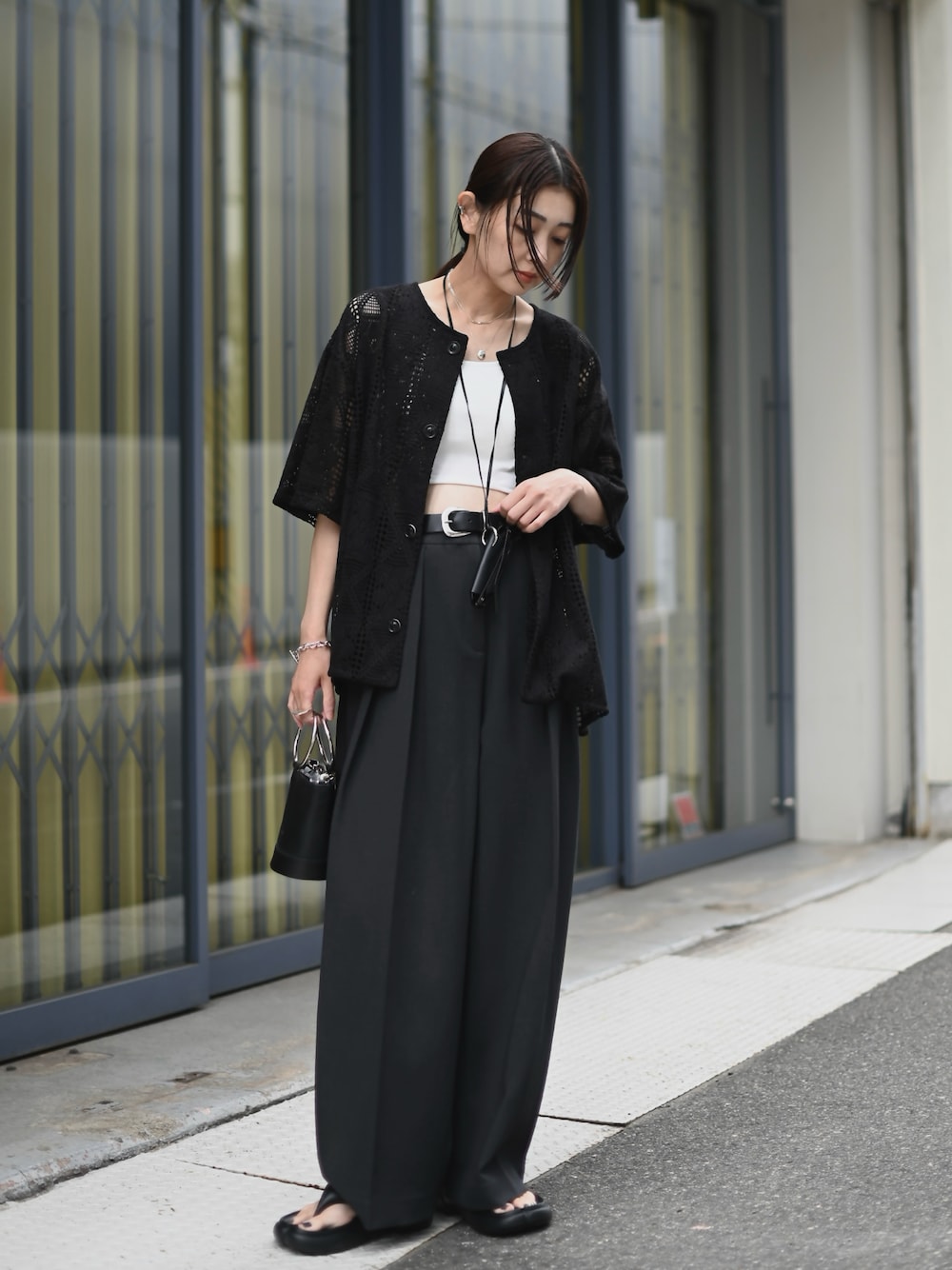 クロシェカーディガンの ブラックで大人っぽく。 タンクやキャミにさらっと羽織るだけで 抜け感もプラスされておすすめです♪ 見て頂きありがとうございます😊 Instagram →mariko____wear