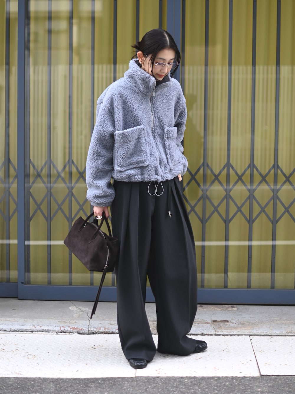 もこもこあったかボアジャケット🧥 ラフだけどだらしなくない😃ボア×ワイドスラックス合わせ。 見て頂きありがとうございます😊 Instagram →mariko____wear