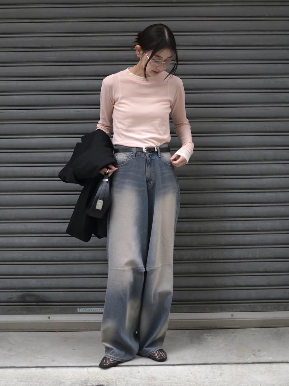 レイヤード風ピンクのシアートップスの着回し。 テーラードとデニムでオトナカジュアルに☺️ 見て頂きありがとうございます♪ Instagram →mariko___wear
