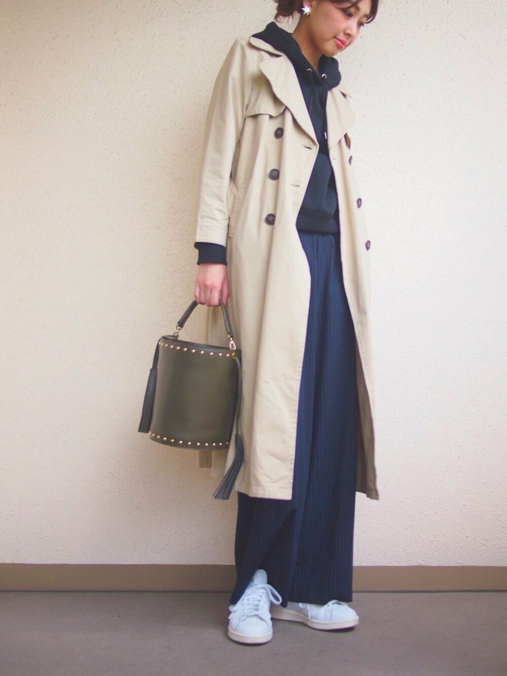トレンチコート×パーカー ボトムもワイドパンツなので、かなりゆったり目のコーディネートに♬ インスタ👉m_stylingpage