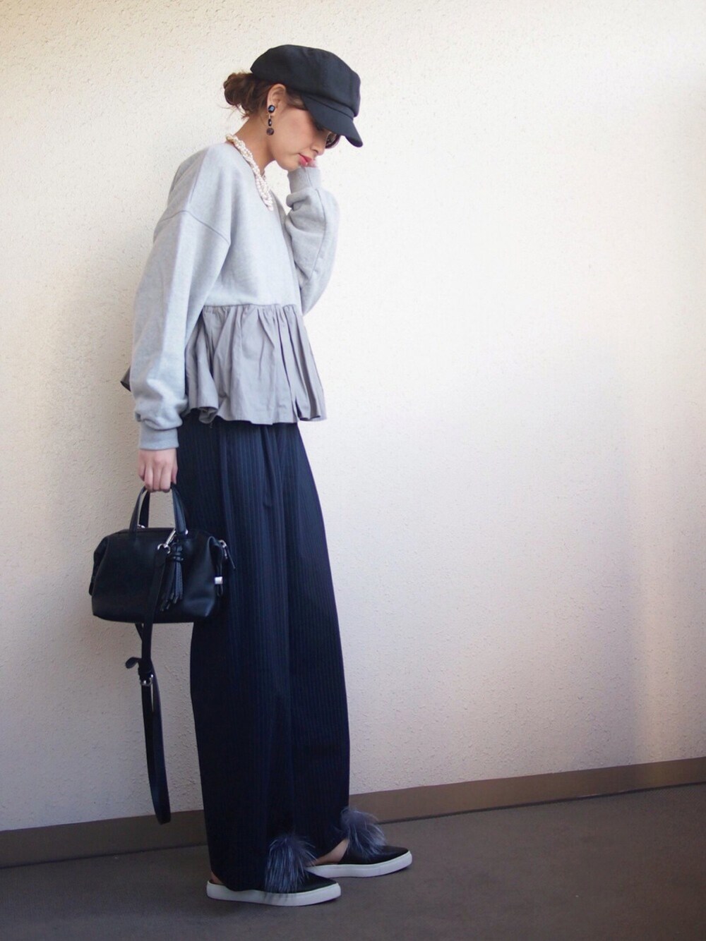 ♣️12/6コーディネート♣️ 肩落ちデザインのゆったり目のスウェットトップスにワイドパンツを合わせました😊🎵 首元が寂しかったので、カジュアルでも使えるパールのボリュームネックレスを✨