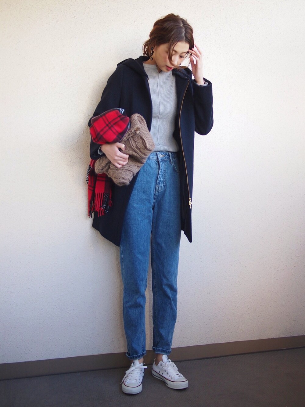 ♥️12/16コーディネート♥️ 今日はIENAのコート🎵 中はタイトなニットにデニムでシンプルに😊 足元は楽ちんなスニーカー👟👟👟