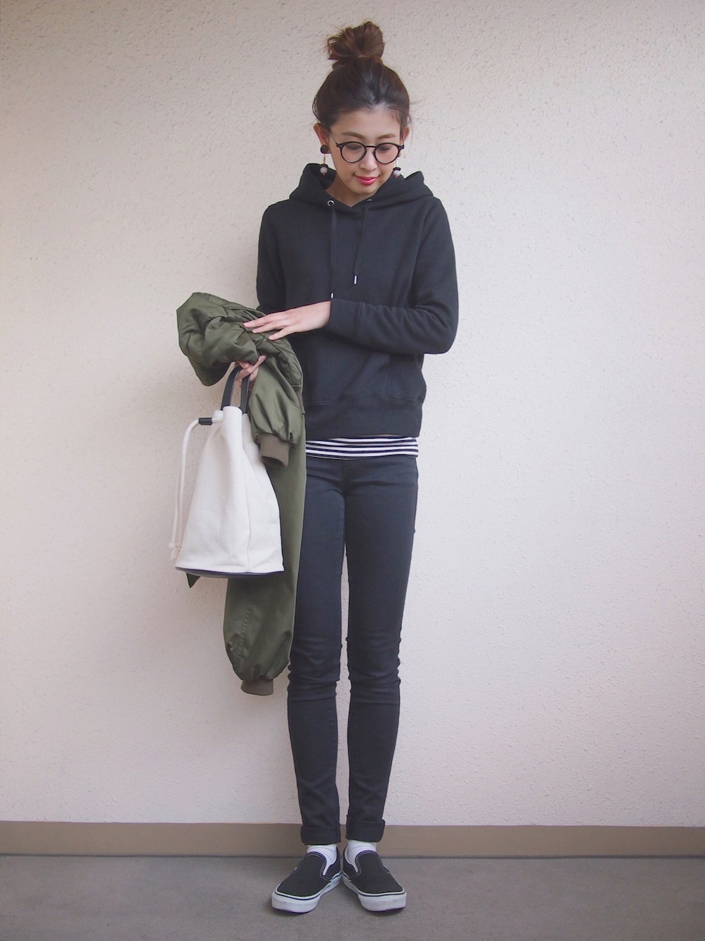 全身ブラック+アウターをカーキにしてみました😄✨ 休日コーディネート🎵 インスタ☞m_stylingpage