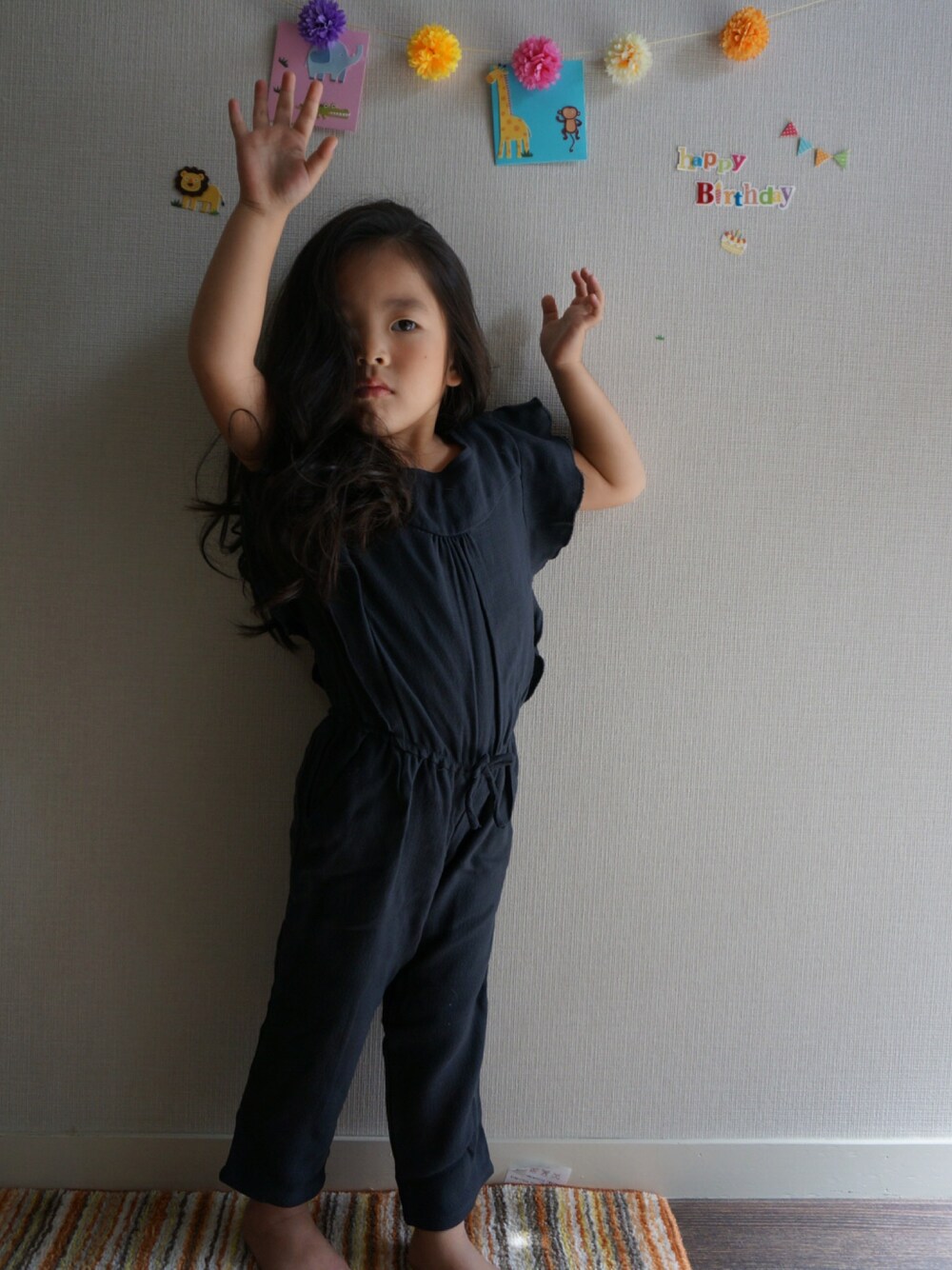 明日は4歳のお誕生日♡ シックな服を着てみました。 本人気に入らないのかすぐ脱がれました(笑)