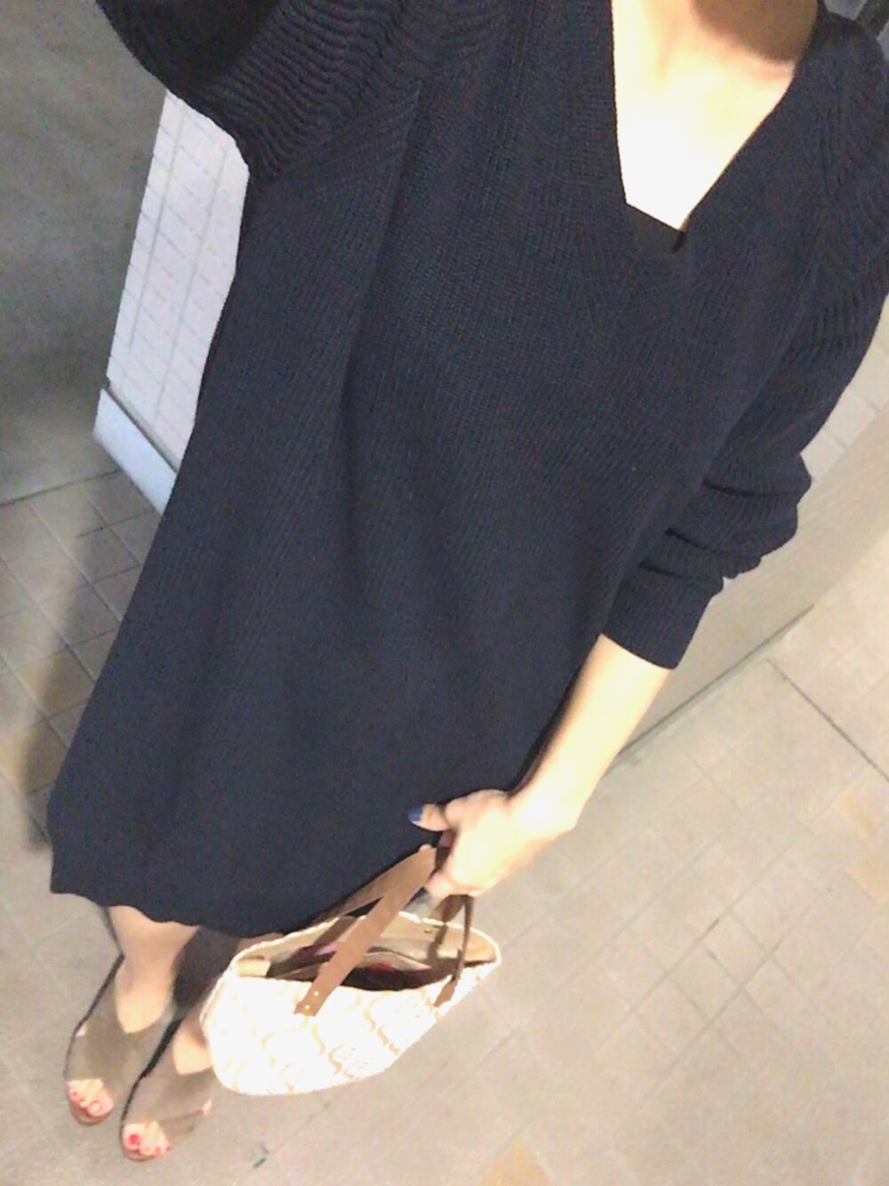 mariko.Aのワンピース「片畦Vネックニットワンピース」を使ったコーディネート