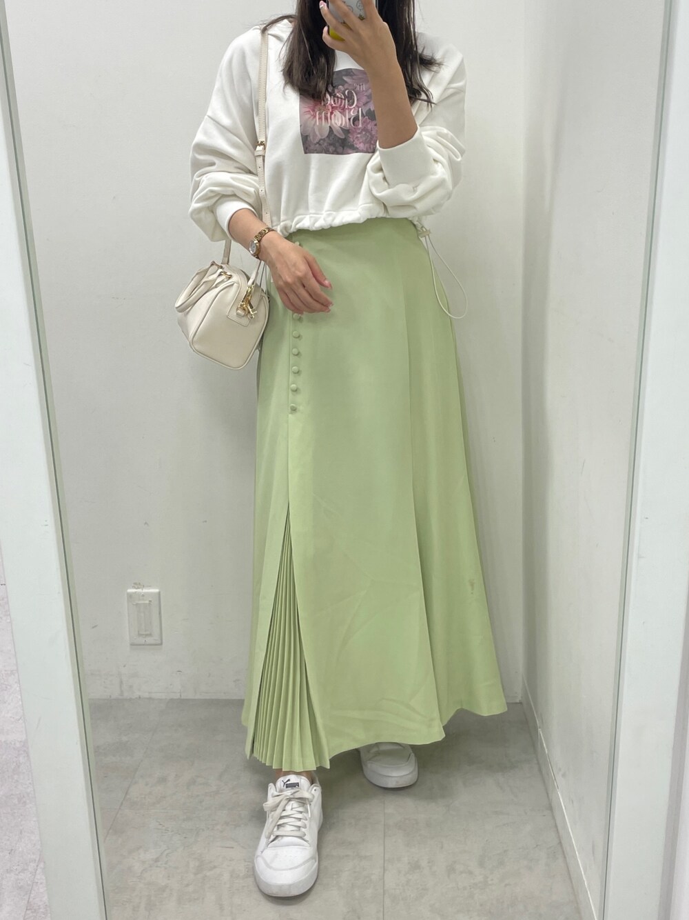 秋に着たくなるスウェットのショート丈バージョン♡ 裾絞りでお好みのシルエットに出来ます‼︎ スカートは162センチでMサイズ着用。 長さちょうどいいです!