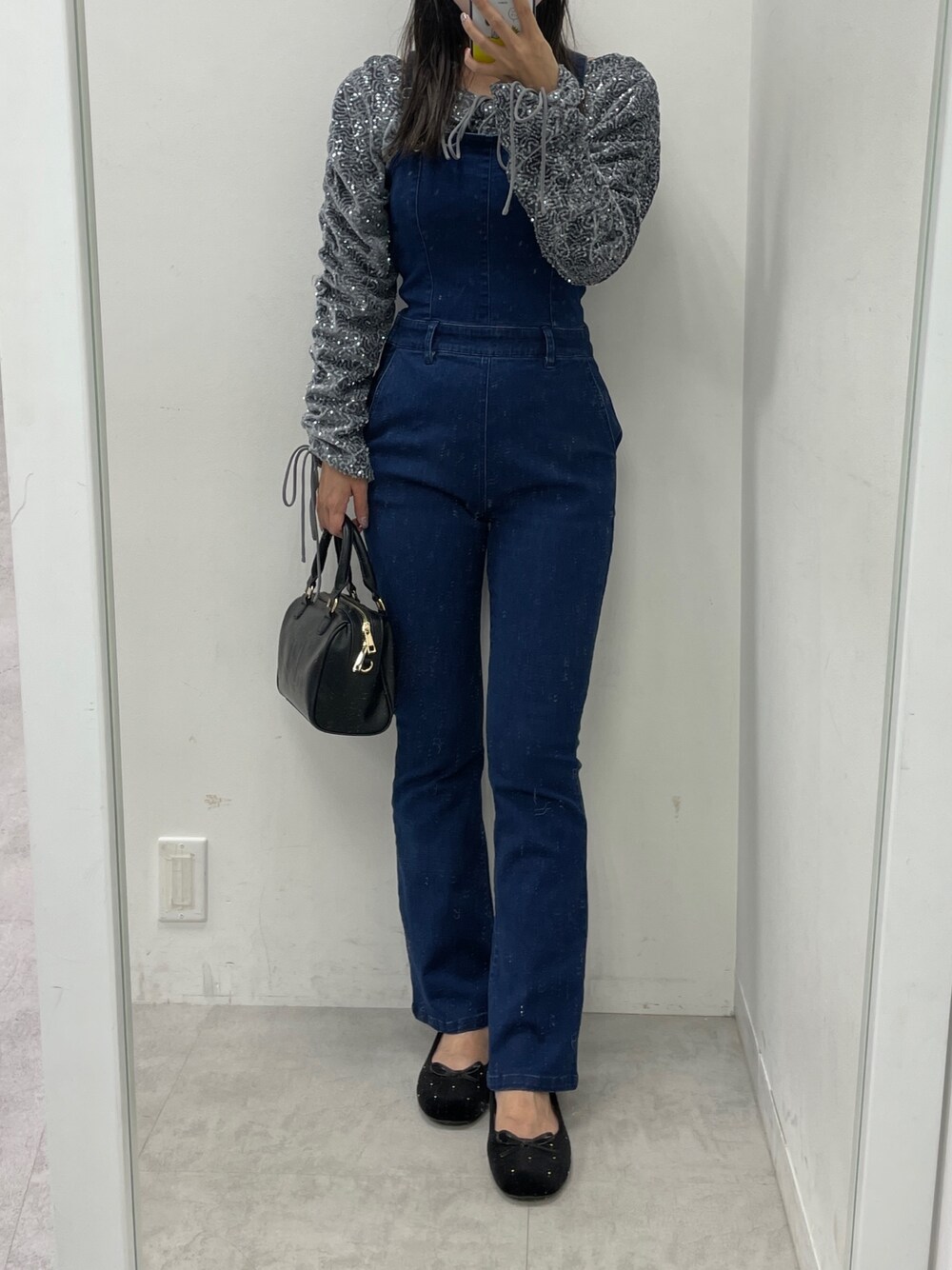 ストレッチ性あるデニムサロペット♡ 細見えしてシルエット綺麗に見えます! 162センチで長さちょうどいいです!