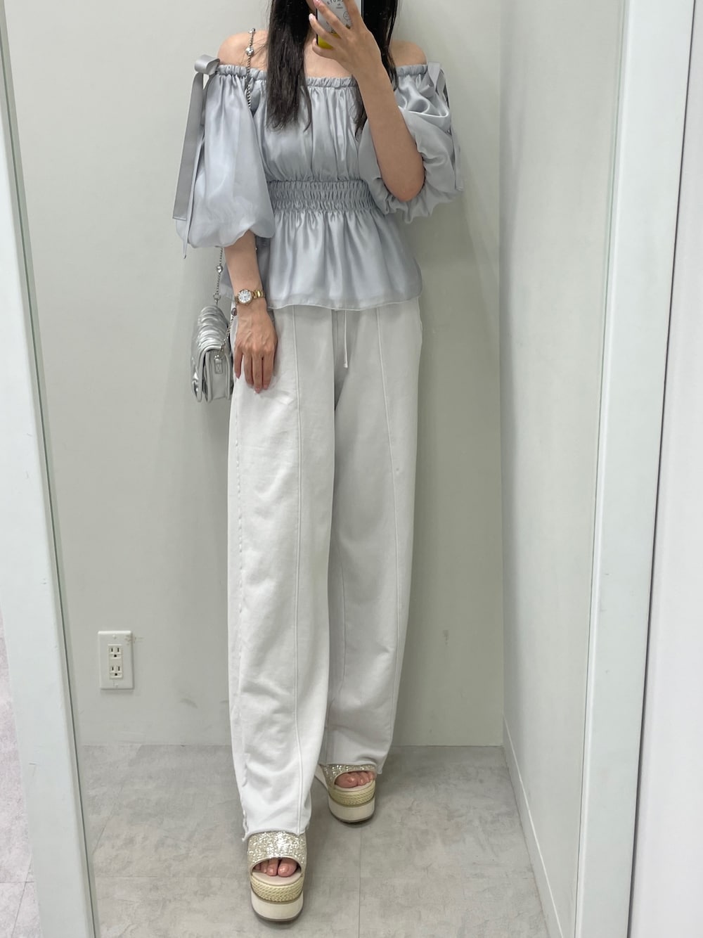 mariko(one after another NICE CLAUP)のシャツ/ブラウス「リボンオフショルブラウス」を使ったコーディネート