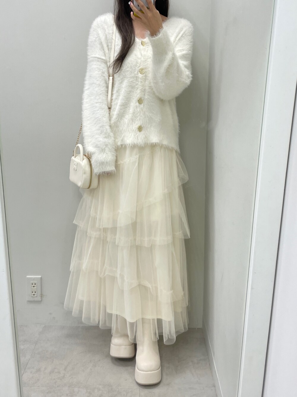 大人気のうさぎカーディガンのロング♡ ふわふわ素材で着心地抜群です! チクチクしないのでストレスフリーなのも嬉しい、、! ティアードスカートと合わせても可愛いのですし、デニムやワンピに合わせるのもおすすめです!
