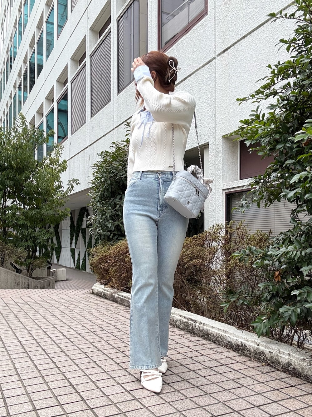mariko(one after another NICE CLAUP)のニット/セーター「【今すぐお届け可能!】シャツドッキングレイヤードニット」を使ったコーディネート
