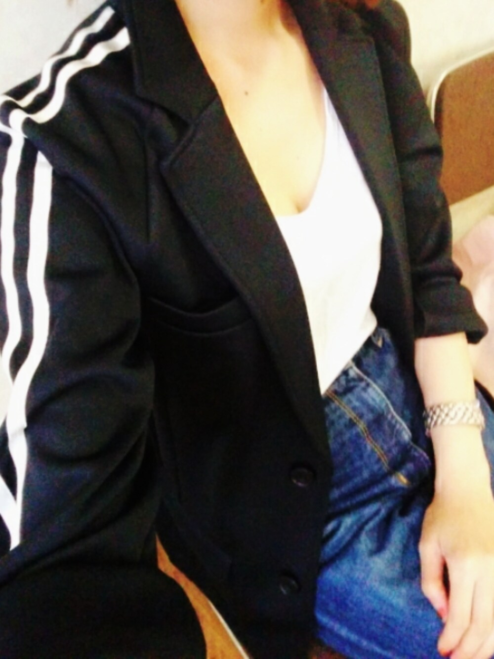 寒い。 ジャージーテーラードでスポーツミックス。 アディダスのトップスもそろそろ着よう。