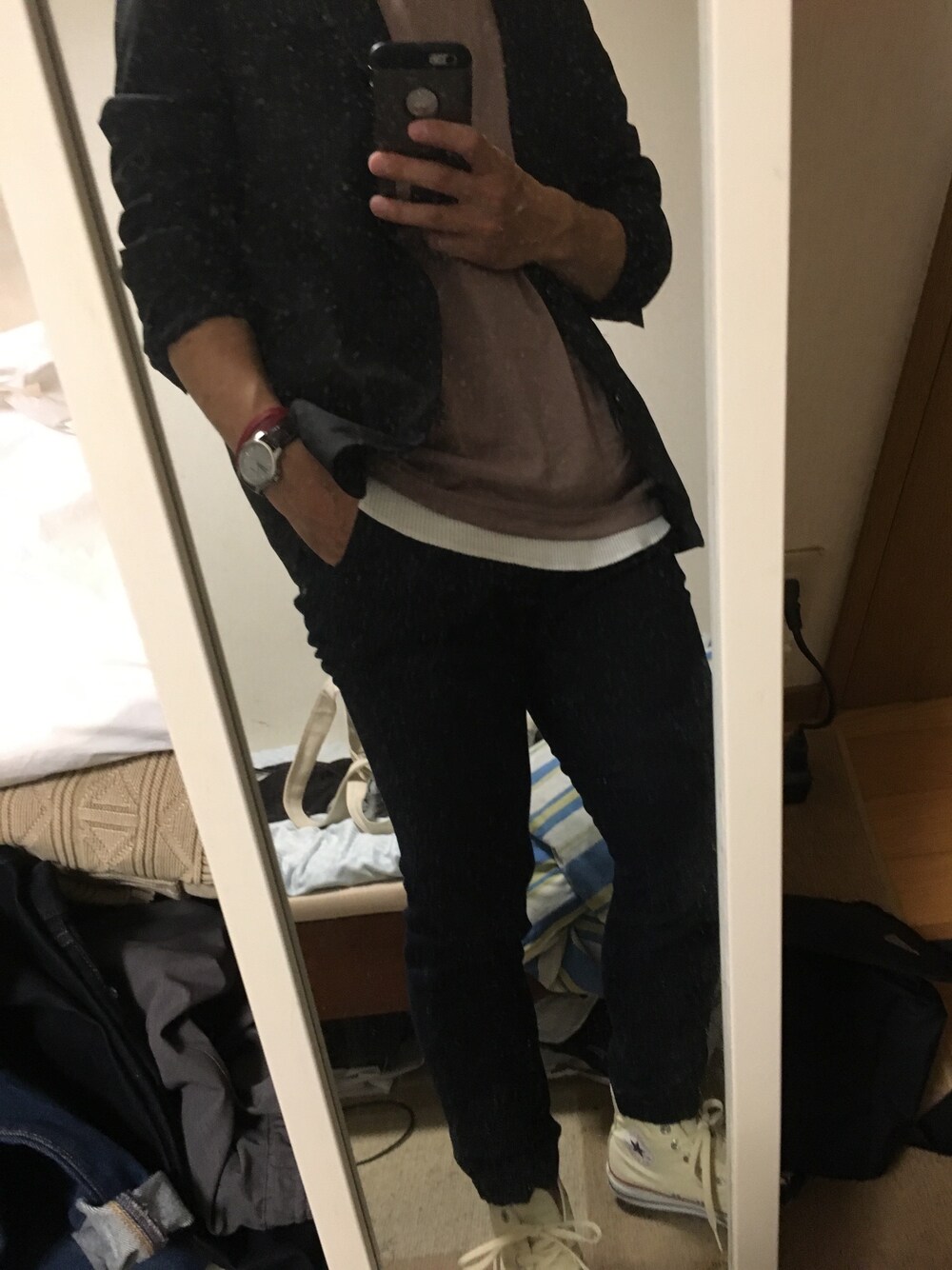 リラックスコーデに、ジャケットだけ羽織った感じで。