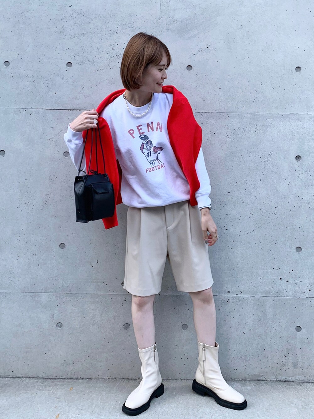 大人カジュアルcode 🥖 レッドカラーのカーデが差し色に。 ig mari_lemage