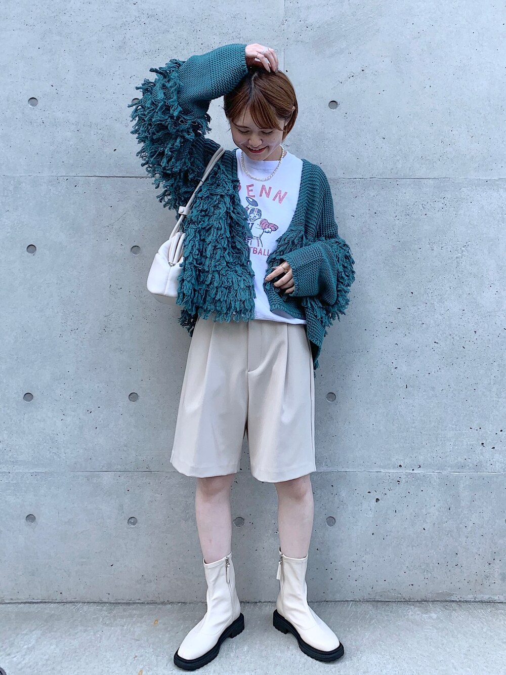 カジュアルな秋code🍂 グリーンのフリンジカーデが主役に。 ig mari_lemage