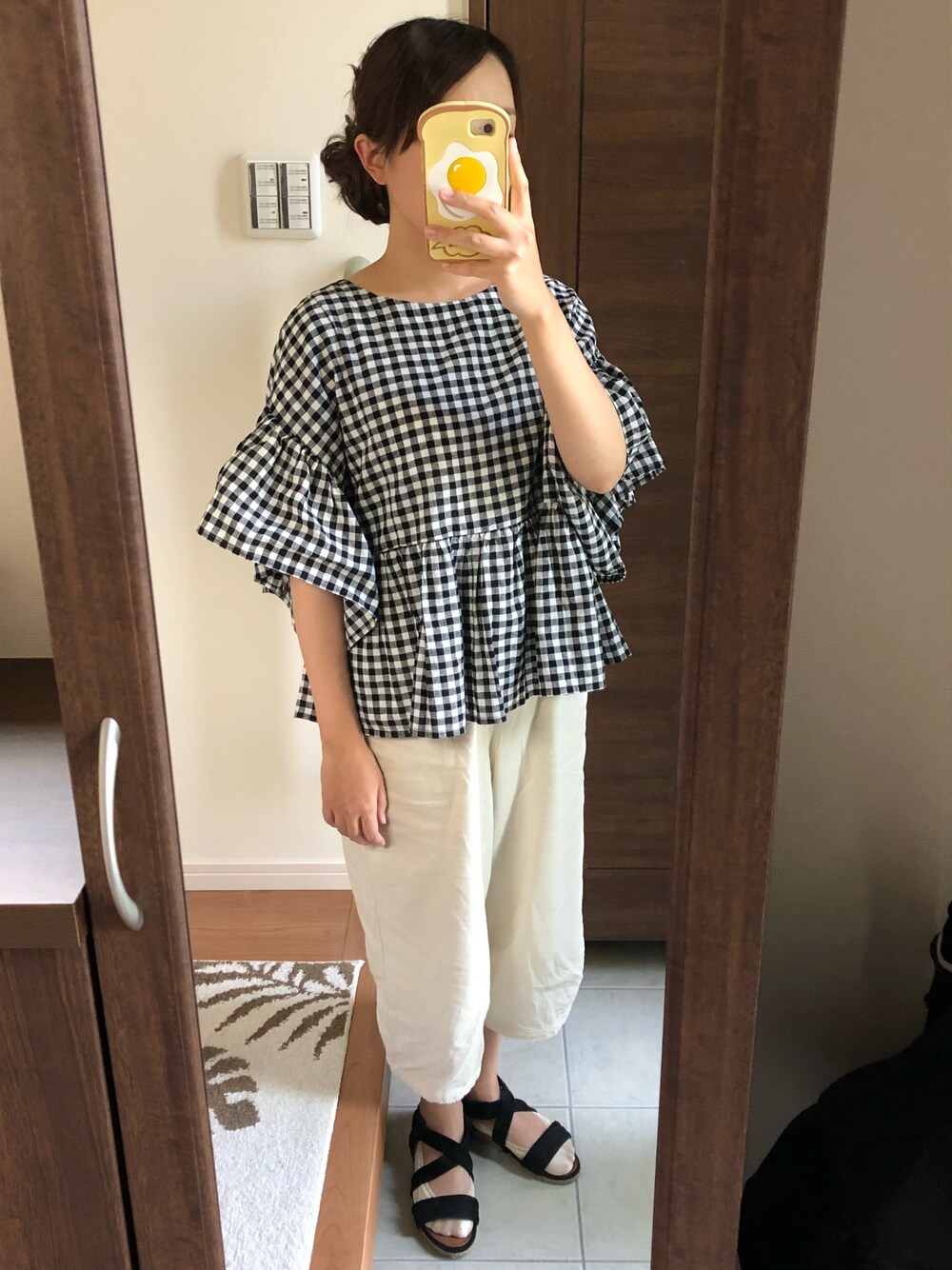 *2018/7/18*本日のコーデ🗒 ・ボリューム袖ブラウス(SM2・ブラック) ・裾レースパンツ(SM2・キナリ) ・カラーフェイクスエードクロスサンダル(studio CLIP・ブラック)
