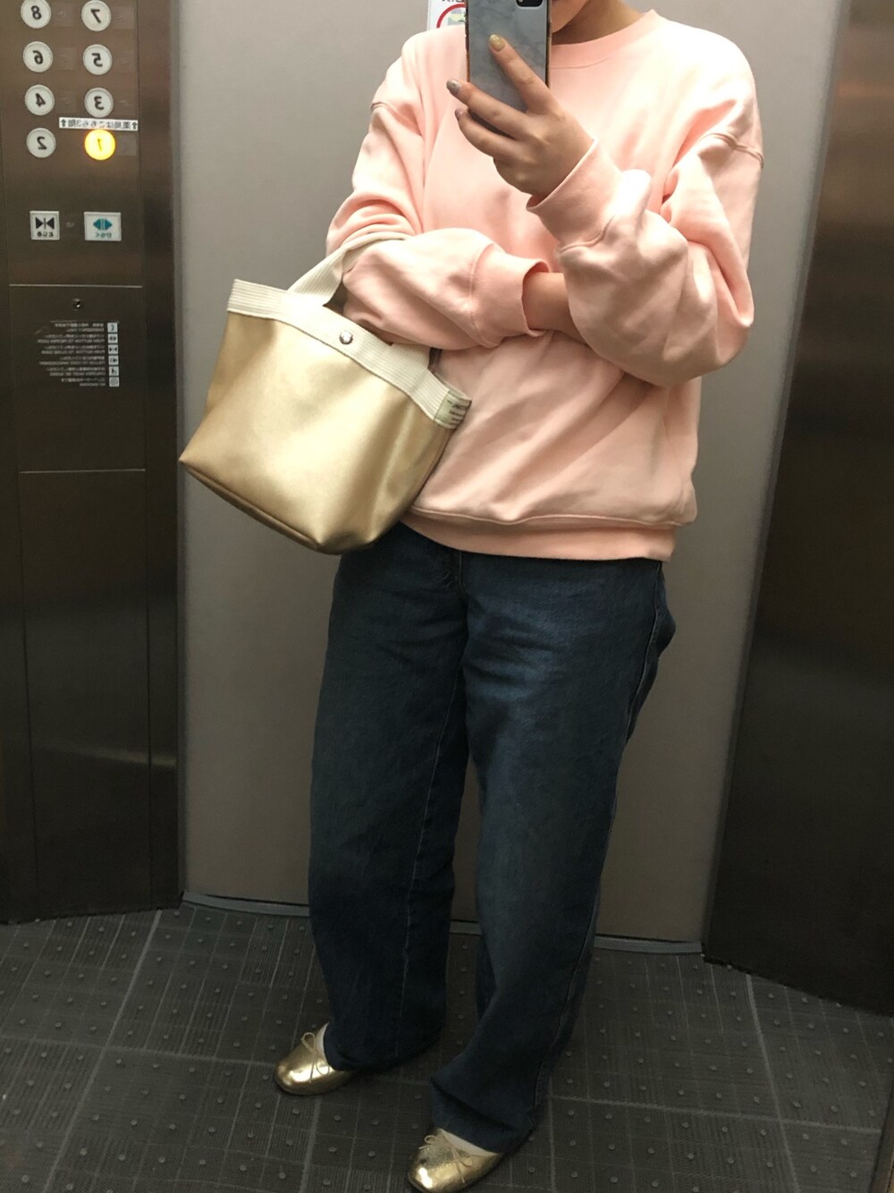 GUの裏起毛スウェットなら アウターいらず。 春はゴールド多め🌞