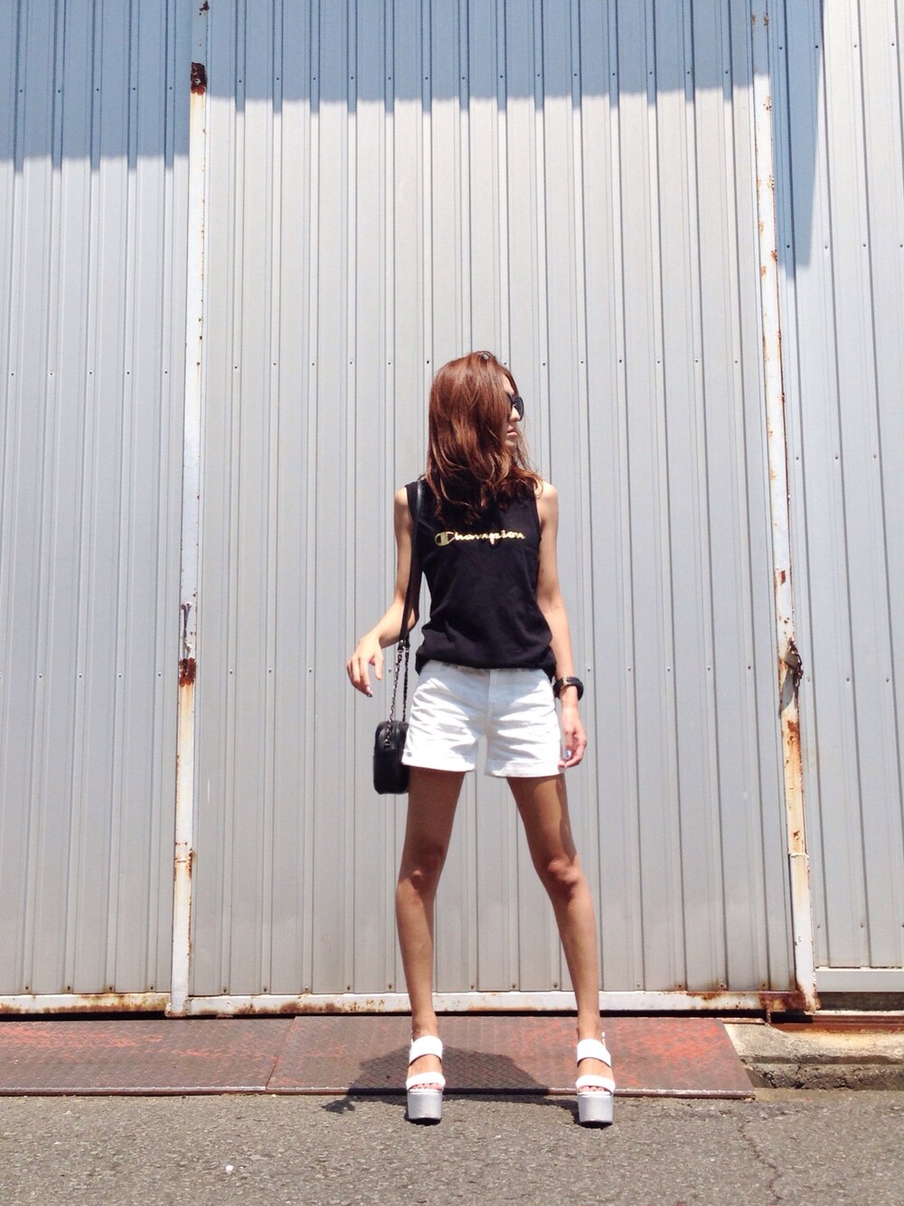 holiday coordinate☆ いつの日かの休みの日のcode☻ EMODA×Championコラボのタンクを着たくて(*^^*)露出多めcodeになってしまったぁ(笑)