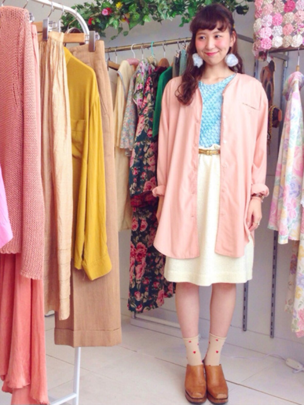 marimeroのシャツ/ブラウス「サーモンピンクのノーカラーシャツ(USED)」を使ったコーディネート