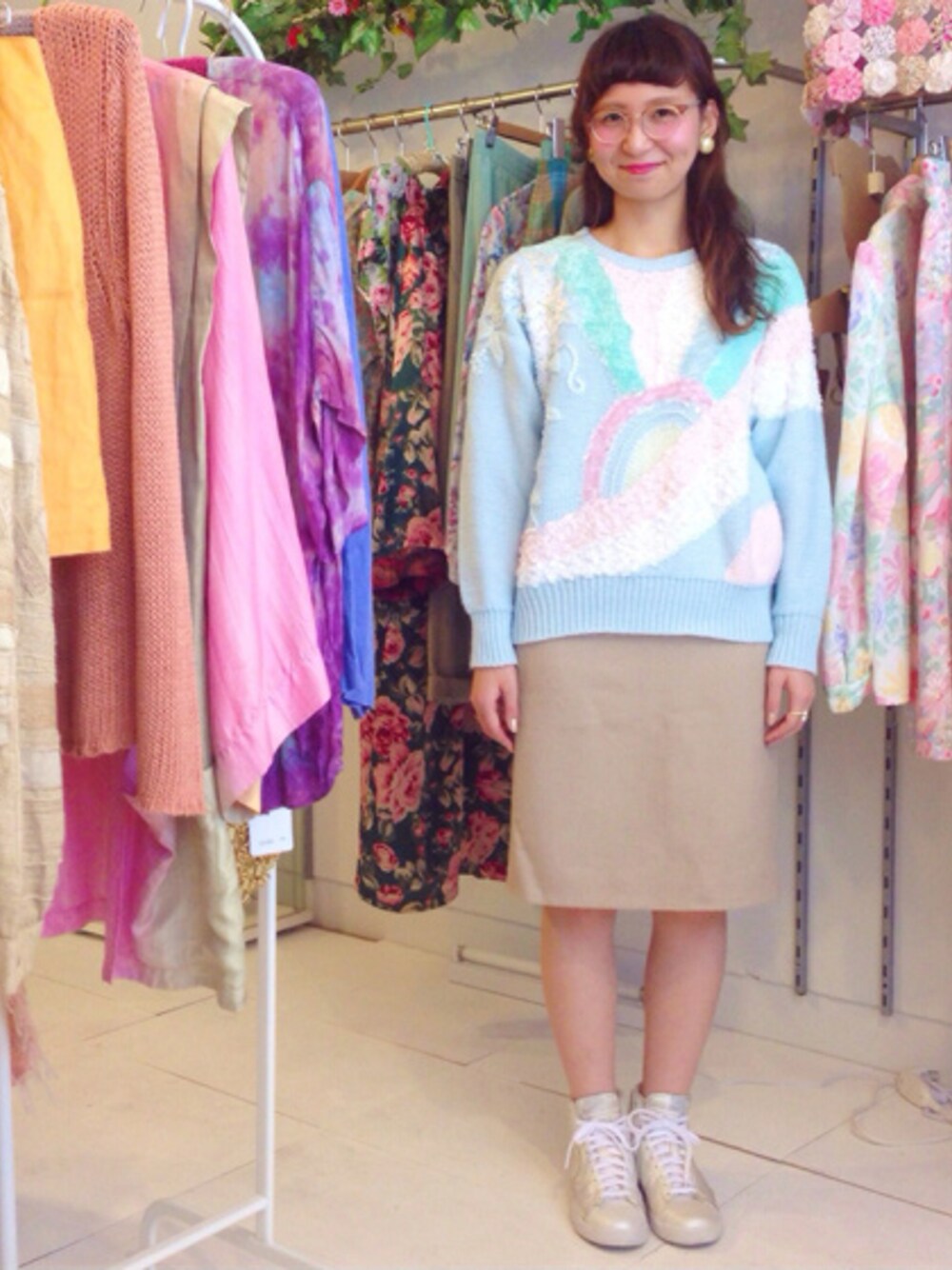 パステルカラーのニットを使った古着コーデ♡