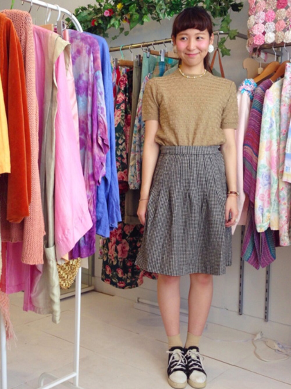 千鳥格子のスカートを使った古着コーディネート♡