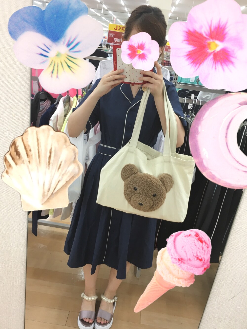 まりのトートバッグ「もこもこbearトート」を使ったコーディネート