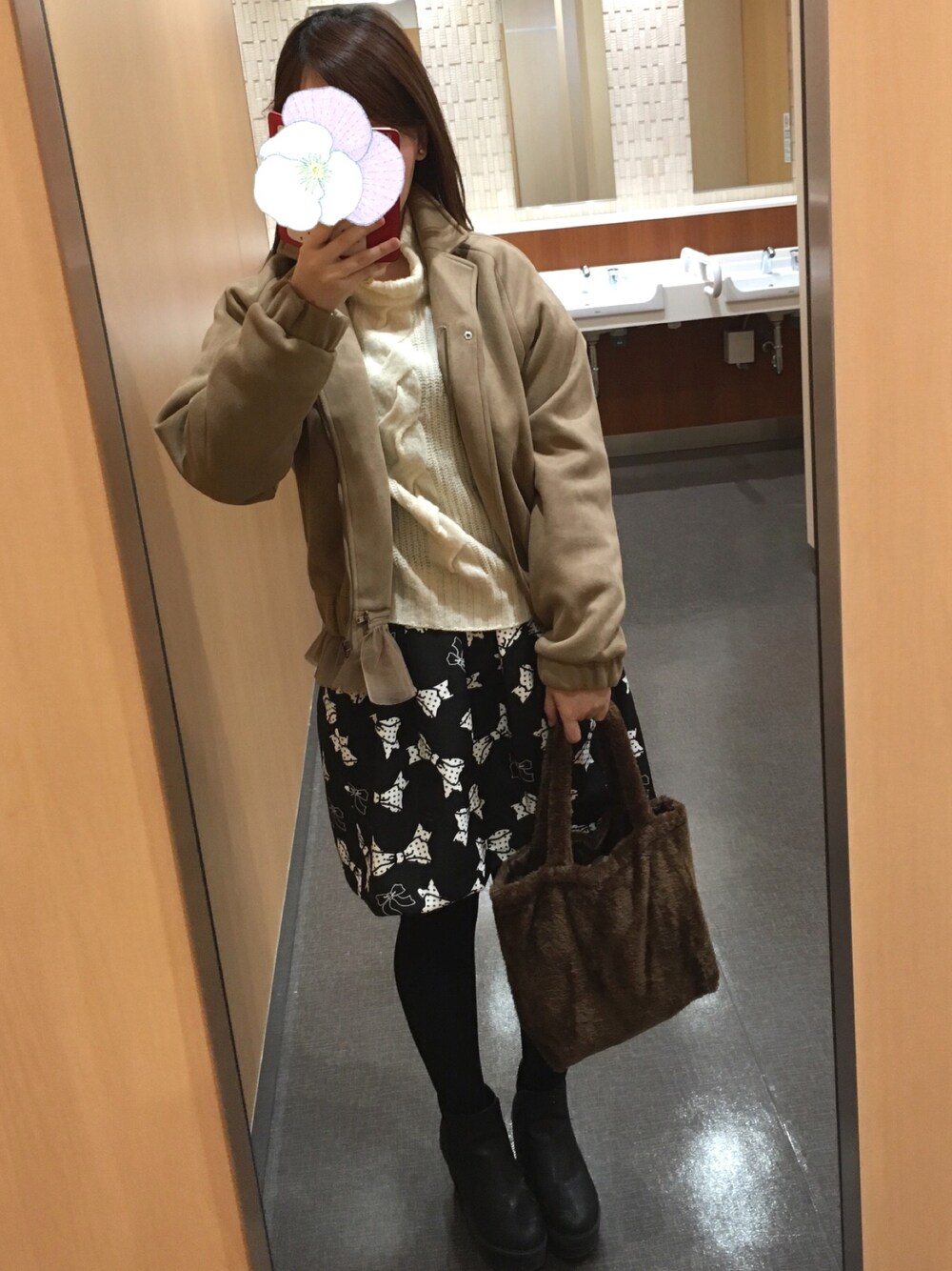 merry jennyのフリルブルゾン、去年に引き続き大活躍しそうです✌️ dazzlinのリボン柄スカートは木更津のアウトレットで😁 このブルゾン、やっぱ可愛い〜❤️奮発してよかった❤️