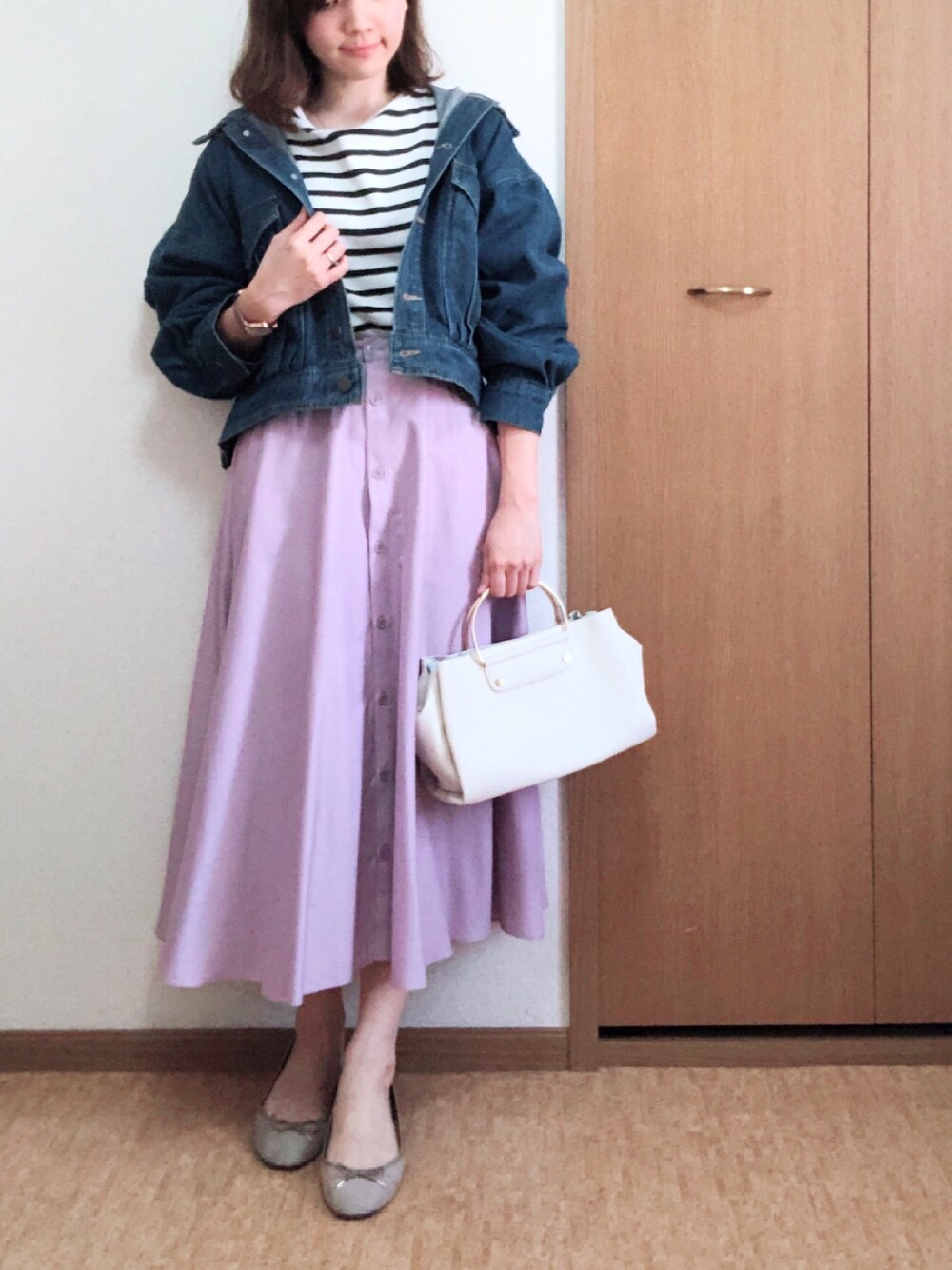 今日のコーデ🌸✨ ユニクロの #フロントボタンサーキュラースカート 💕 持ってる服の中で 唯一のピンク系のアイテムです😅 instagram → marimo0707