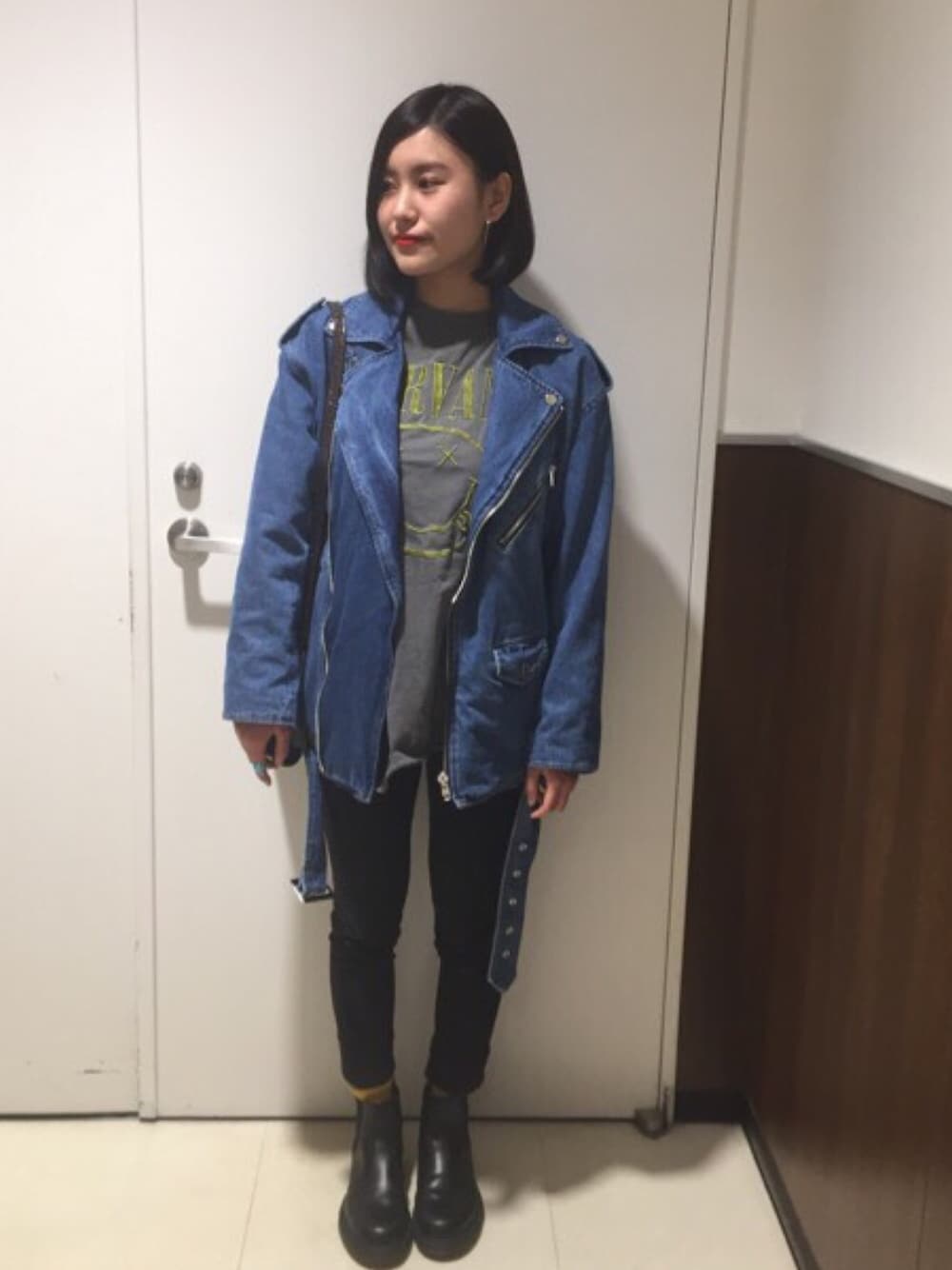 NIRVANAのクラッシュTに黒パン! まだ半袖だけでは寒いのでライダースを合わせました。 ドラフトjouetieに参加したくて初WEARです!