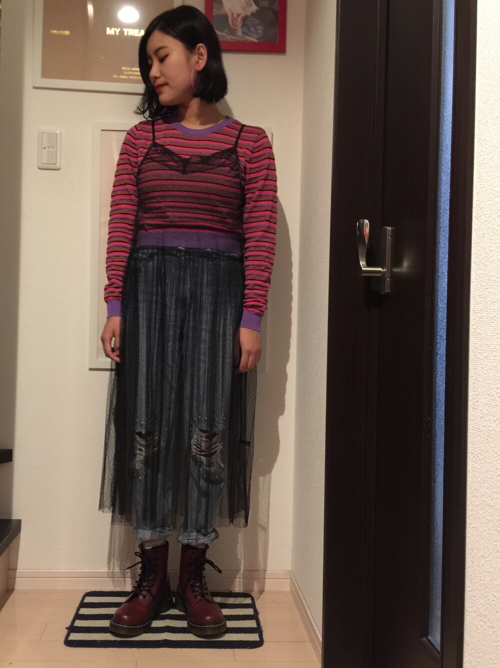 mmm☺︎のニット/セーター「ラメボーダーチビニット」を使ったコーディネート