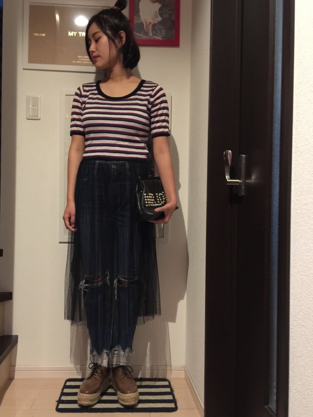 mmm☺︎のニット/セーター「マルチラメボーダーニット」を使ったコーディネート