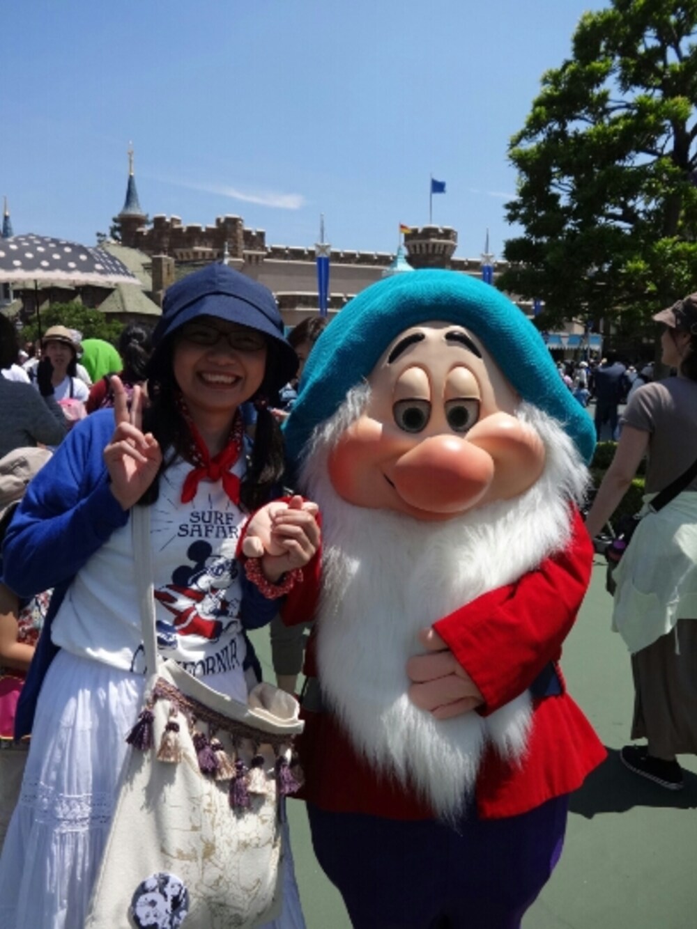 昨日はディズニーランドに行ってきました! 白雪姫のこびとさんがいたので一緒にパチリ☆ 思ったほど混んでなくて快適♪ TシャツはZOZOのランキング1位になったミッキー×Blue StandardのコラボTシャツシリーズ。 ミッキーの表情がHAPPY! 女の子でもメンズのMサイズをゆったり着れば首回り詰まりすぎなくて着やすいです♪ innocent blueのカーデで紫外線対策もバッチリ!